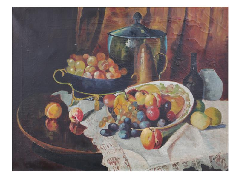 NATÜRMORT. TUAL ÜZERİ YAĞLIBOYA. İMZALI. 60X104 CM.