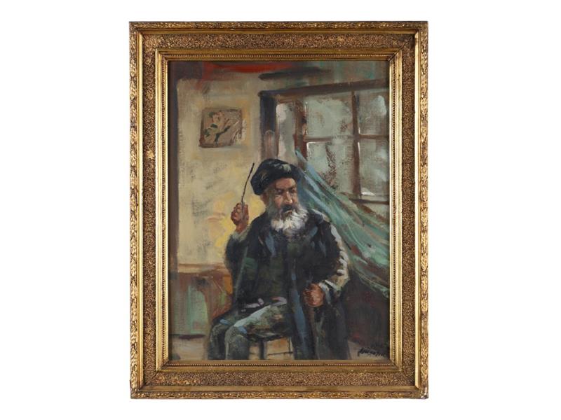 İHTİYAR ADAM. TUAL ÜZERİ YAĞLIBOYA. HÜSEYİN İMZALI. 40X30 CM.