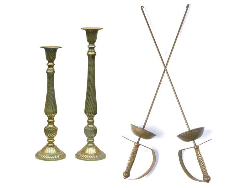 2 ADET PİRİNÇ ŞAMDAN VE ÇİFT PİRİNÇ ŞÖMİNE AKSESUARI