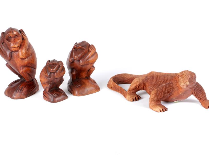3 ADET MAYMUN FİGÜRÜ. 11-19 CM. 1 ADET İGUANA FİGÜRÜ. UZ 32 CM.