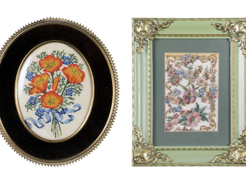 OVAL FORMLU. ÇİÇEK BUKETİ. 13X10 CM. ORİJİNAL KADİFE VE PİRİNÇ ÇERÇEVELİ. DİKDÖRTGEN FORMLU. 16,5X11 CM.
