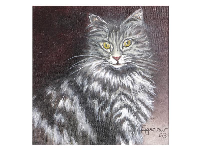 KEDİ. TUAL ÜZERİ YAĞLIBOYA. AYŞENUR İMZALI. 2013 T. 30X30 CM.