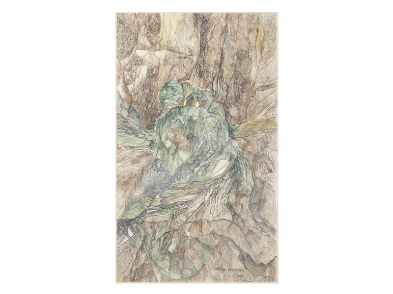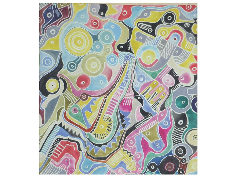 KOMPOZİSYON. KAĞIT ÜZERİ SULUBOYA. SEMİHA BİNZET. İMZASIZ. 1988 T. 40X32 CM.