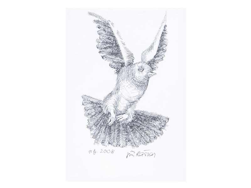 KUŞ. KARTON ÜZERİ ÇİNİ MÜREKKEBİ. İMZALI. 2008 T. 20X14 CM.