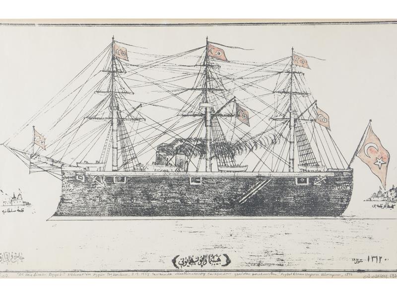 HEYBETNÜMA VAPURU. KARTON ÜZERİ BASKI. İMZALI 1978 T. 31X50 CM.
