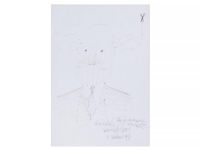 EXLİBRİS ÇALIŞMASI. İMZALI. 1998 T. 20X13 CM. RESİM 13X10 CM.