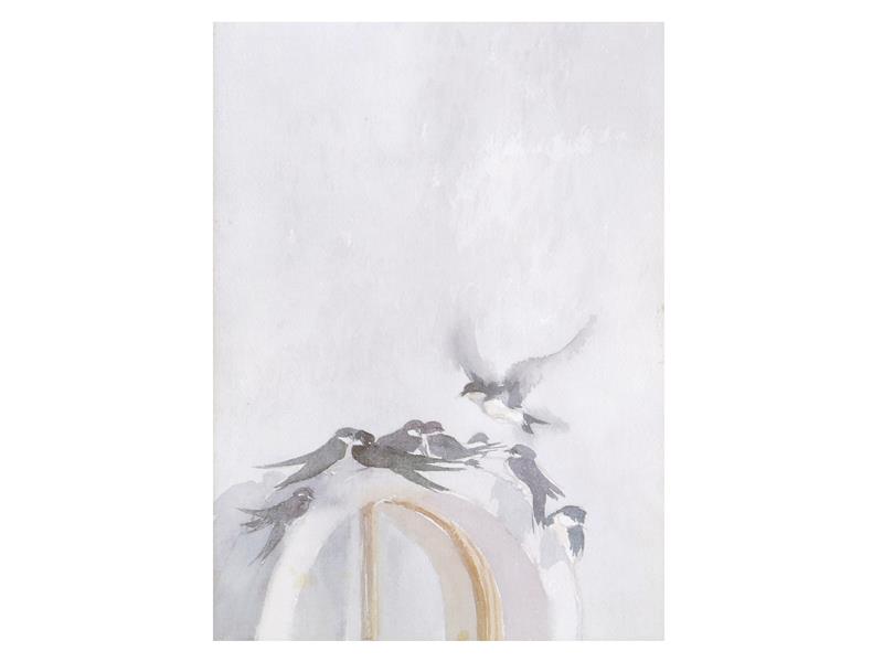 KUŞLU KOMPOZİSYON. KARTON ÜZERİ SULUBOYA. İMZASIZ. 31X22,5 CM.