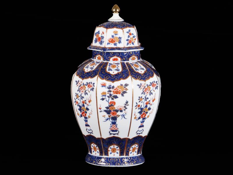 UZAKDOĞU. İMALAT DAMGALI. RENKLİ ÇİÇEKLERLE ALTIN YALDIZ EL DEKORLU. H 30 CM.