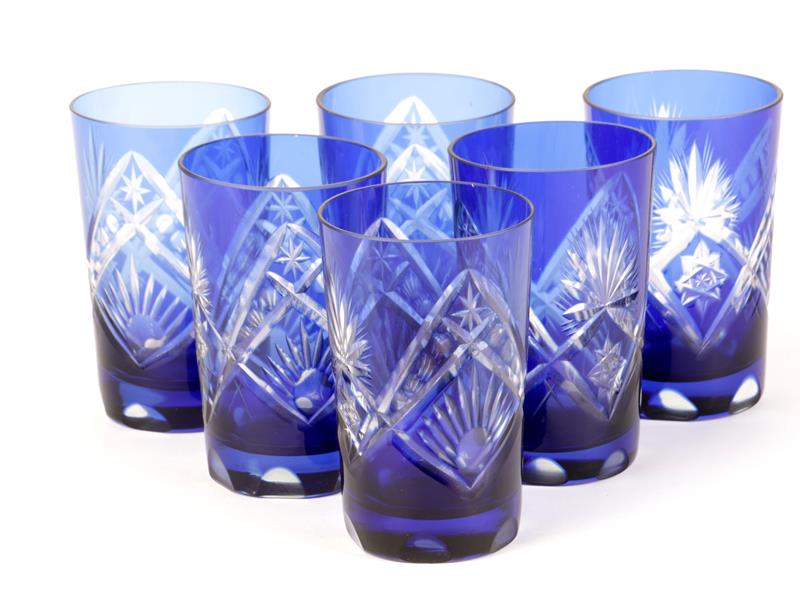 KESME KRİSTAL. LACİVERT RENKLİ, SÜRAHİ VE BARDAĞI. H 20 CM.